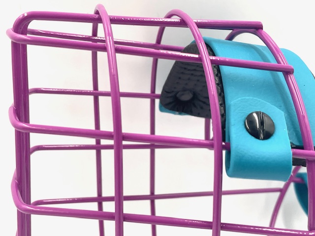 Die Maulkörbe werden nachträglich Pulverbeschichtet (von maulkrob-factory.de), daher sind die Riemen anschliessend neu angebarcht worden mit Buchschrauben. Um ungewolltes Öffnen der Buchschrauben zu verhindern, empfehlen wir dringend, die Schrauben mit einem wasserfesten und für Metall geeigneten