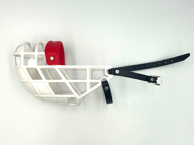 Das Maulkorbgitter ist im unteren Bereich geschlossen. Es gibt aber zwei kleine Öffnungen für die bessere Luftzirkulation.